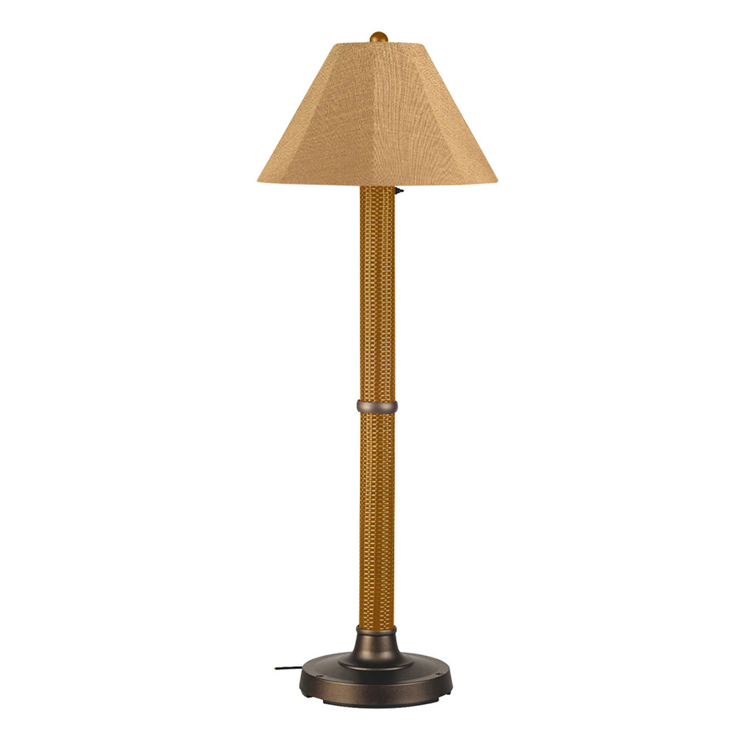 - Bahama Weave 60" Floor Lamp - Mocha Cream Wicker Body with Straw Linen Sunbrella Fabric Lamp Shade