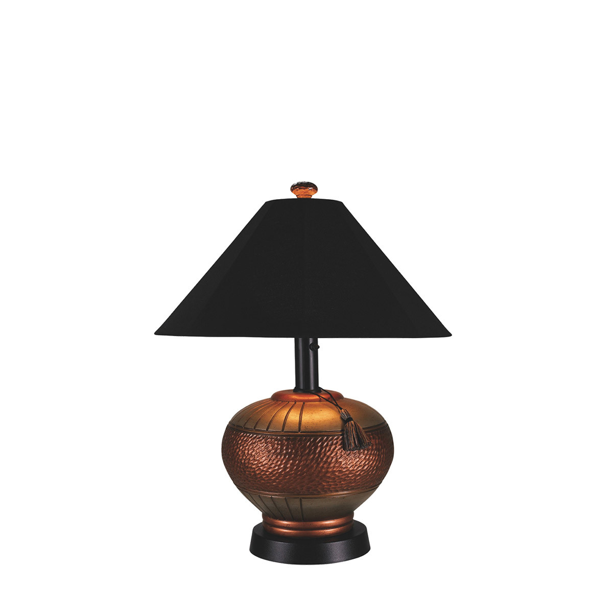 Add casual elegant styling to your outdoor living area. Phoenix lamps feature all resin construction with a heavy weighted bronze or copper and brushed silver base with carbon black accents.