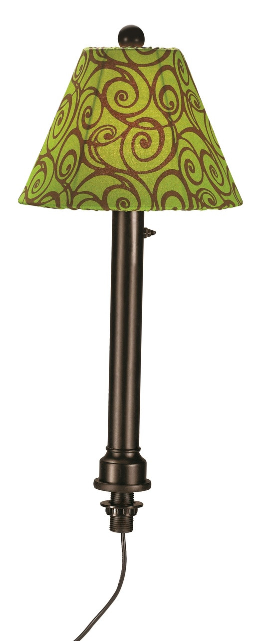 Umbrella Table Lamp - Bronze Body with Green Outdoor Pattern Fabric Lamp Shade
